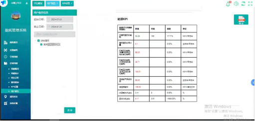 2)KPI指标:增加KPI概况以及用户报告部分,将月度,年度KPI指标进行计算,如:单位面积能耗、烤漆房工件能耗、回收水利用率等等。