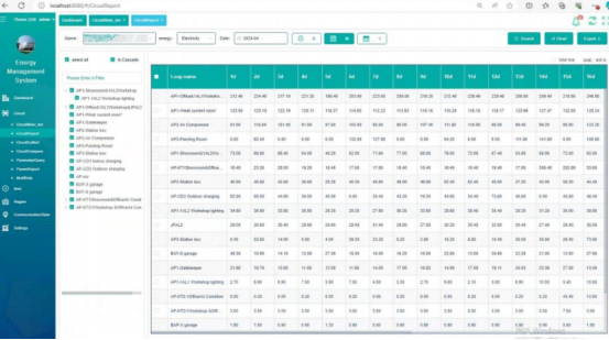 1)区域能源计量:将客户主要的用能按照能源类型分为电、水、压缩空气、燃气等。按区域划分为车间用电,办公区域用电,展厅及售后服务区域用电等。按分项划分为空调用电、动力用电、照明用电、光伏发电,自来水、回收水等。根据现场情况满足客户对于能源管理的基本要求,且自定义程度较高。