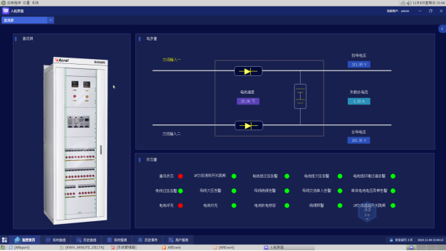 此界面可实时监视直流屏的电参量、通讯状态以及开关量状态。用于监视直流屏的状态,及时发现异常状态,发出报警信息。