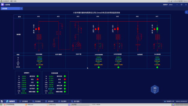 在此界面为项目一次设计图,可以查看直接保护装置的电量参数,监视断路器和手车的状态。装置在远方状态时可以遥控断路器的分合,实时监测厂站数据,能够及时的发现异常告警,便于及时做出相应的处理。