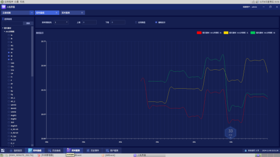 在实时曲线界面,可以为用户显示实时数据,用户可以选择想要查看的数据,用户可以同时选择至多四个数据进行实时对比。